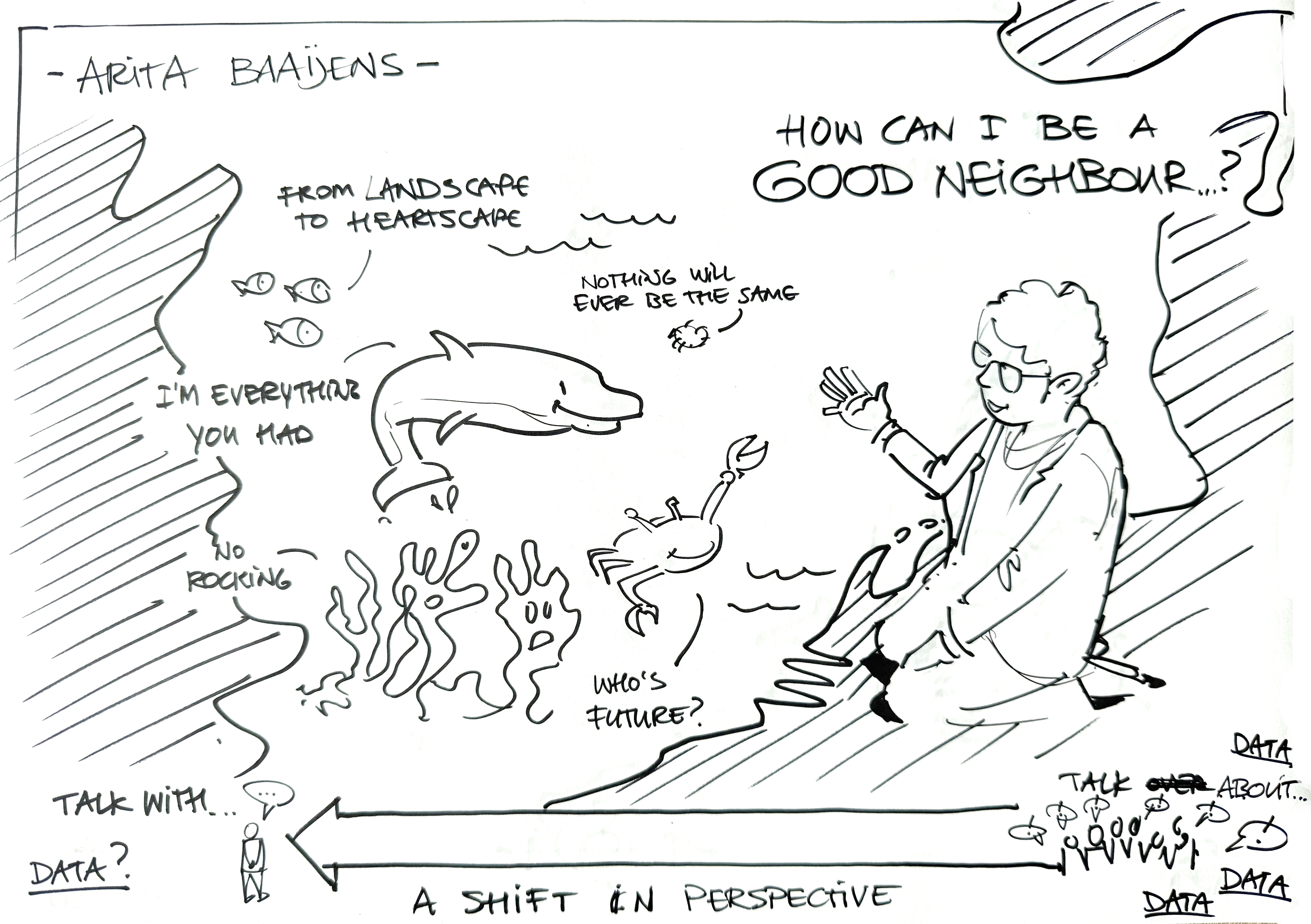 Baaijens introduceerde drie invalshoeken om recht te doen aan de zee: matterscape (het meetbare), powerscape (de grenzen en belangen) en mindscape (de herinneringen en emoties). Alle drie zijn nodig om de Noordzee volledig recht te doen.