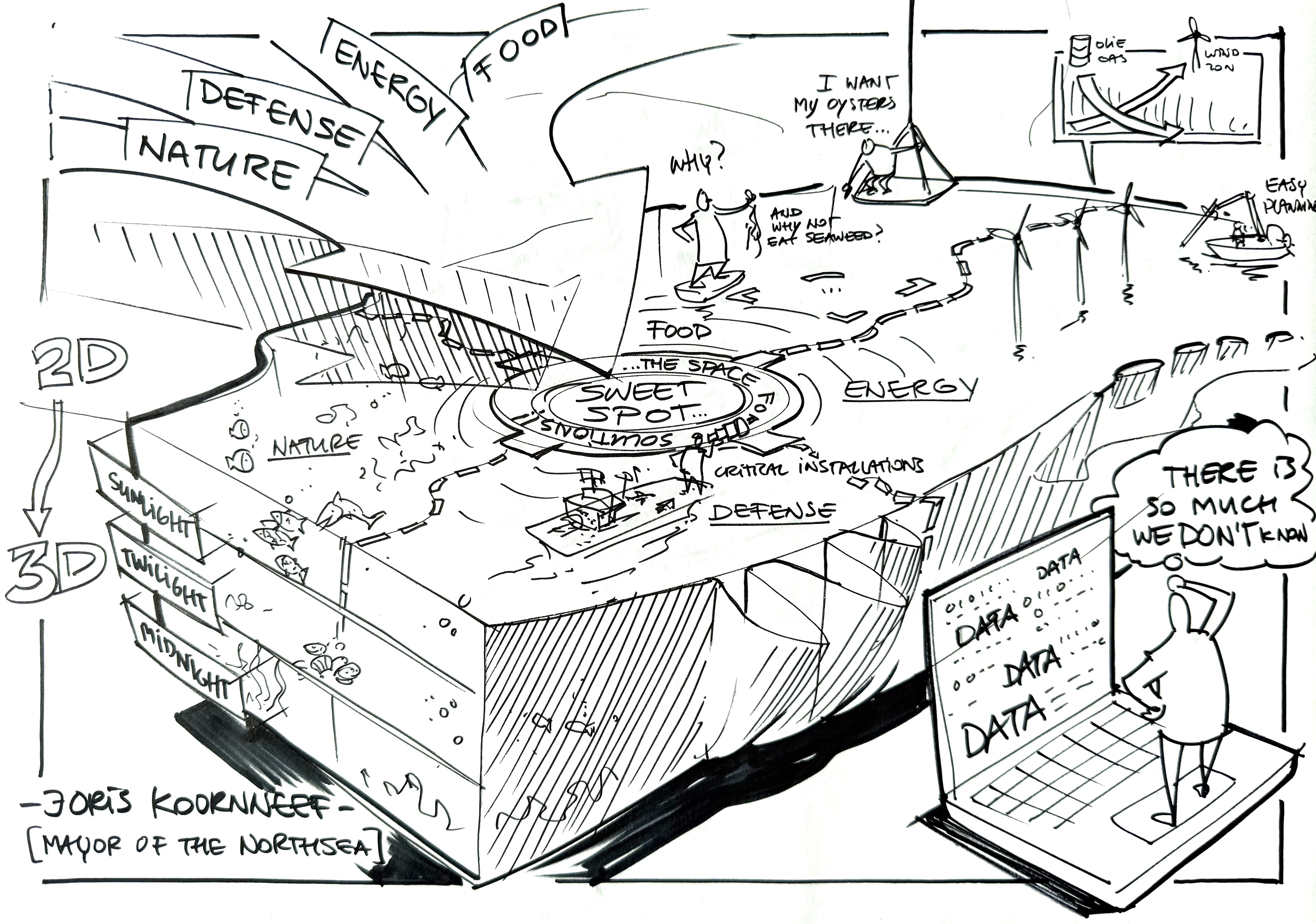 Parralelsessie Natuurversterking Noordzee, tekening Wouter Boog