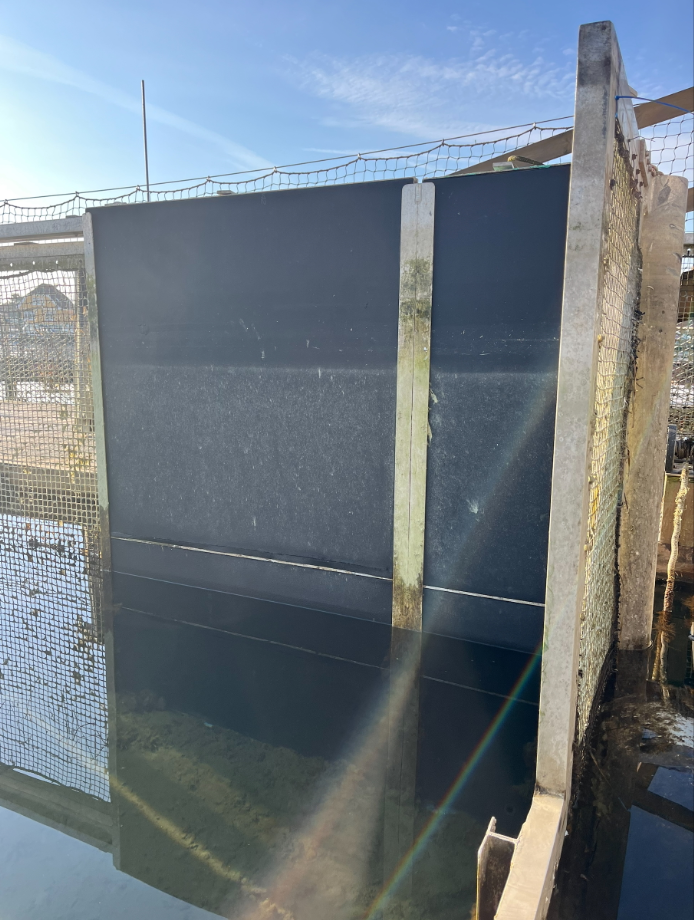 Black soundproofing shields of the pool in Kerteminde, Denmark, to use for TTS and psychophys